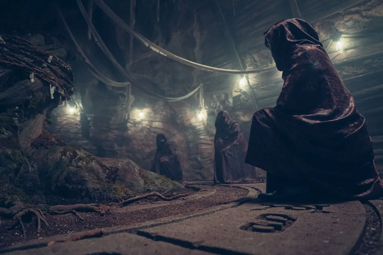 合わせて新たに解禁となったメイキング画像は、マ・ドンソクがトレーニングマシンに腰かけ笑顔を見せる様子や出演者同士の和気あいあいとした撮影風景だけでなく、悪魔祓い株式会社の調査能力の高さがうかがえる”壁”や、劇中登場する呪われた家に隠された不気味な古代文字、カルト集団の怪しい儀式の様子など、細部にわたるまでこだわり作り上げられた作品の世界観が伝わるカットとなっている。