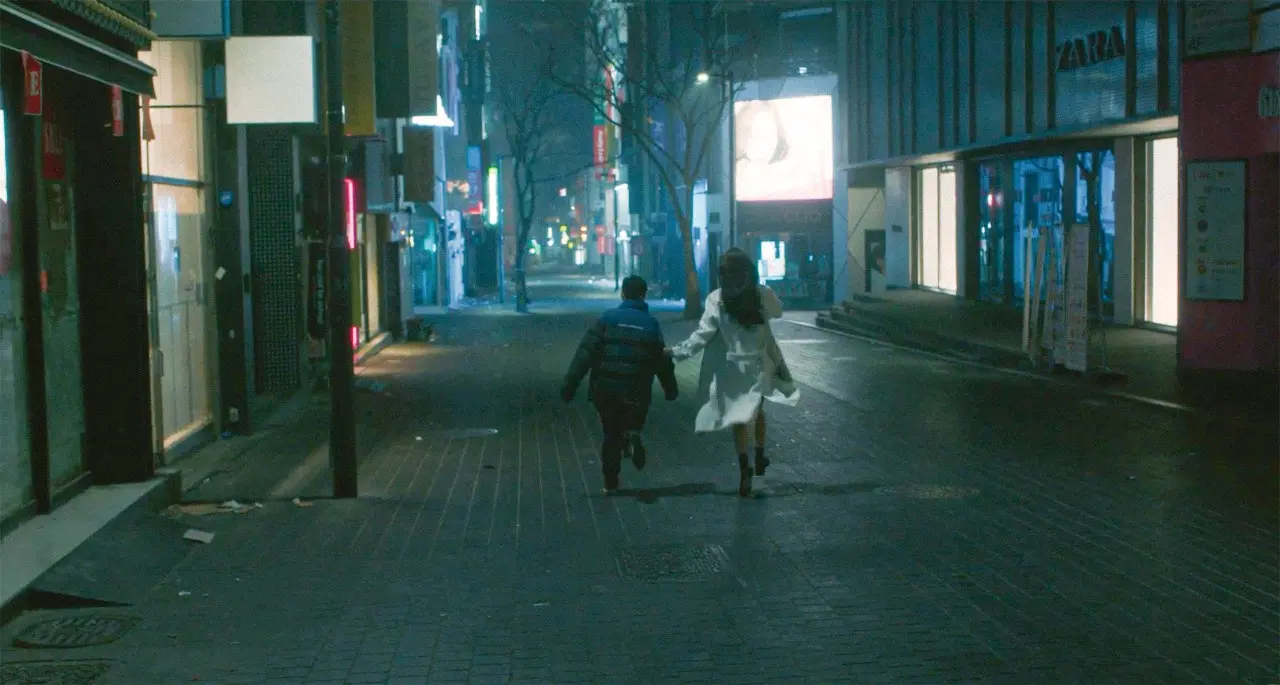今回初解禁となるのは、高校時代のソル(ハン・ソヒ)とスアン(ハン・ヘイン)の息を呑むようなキスシーンをとらえた本編映像。運命に導かれるように親しくなった、孤独を抱える二人の少女、ソルとスアン。ある夜明け、ソウル・明洞へと出かけた二人は、暗い室内で互いの本心を打ち明ける。「いつか映画を撮りたい」と打ち明けた俳優志望のスアンに、「仲間に入れて」と言うソル。すでにスターとして活躍するソルからの夢のような提案に「ウソじゃないよね」と驚くスアンに、ソルは「演じるのはずっと退屈だったけど、あなたと一緒なら楽しそう」と本心を吐露する。スアンからの友情以上の想いを感じていたソルは、「それで、どんなジャンル?」と問いかけ、そっと唇を重ねる。それはスアンにとって初めてのキスだった。凍えそうな彼女たちの心から雪が溶け出すようにした、初めてのキス。重ねて「恋愛ではなく?」と問うてくるソルに、自分からもキスを返すスアン。互いの寂しさを埋めるように深く、静かに熱を帯びていく二人。しかし芸能界で活躍し多くの経験を積んだソルとは対照的に、自身の気持ちがまだ“友情”なのか“恋愛”なのかがわからず戸惑ったスアンは、途中で「こういうのはよくないよ」と拒んでしまう──。幻想的なネオンに照らされる二人の、揺れ動く思春期の淡くも抑えきれない恋心が伝わる、美しく印象的なシーンとなっている。