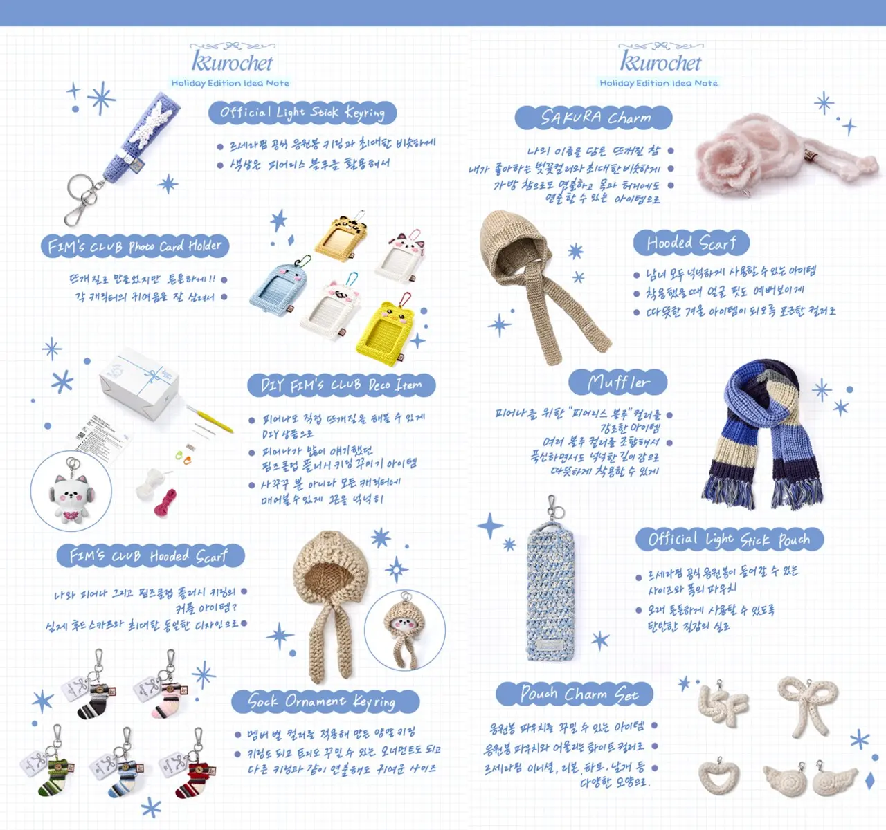 SAKURAは、ことし一年を共に過ごした「LE SSERAFIM」のメンバーたちとファン「FEARNOT」に感謝の気持ちを伝えるために、「KKUROCHET Holiday Edition」を制作した。特別な意味を込めるため、企画から制作全般に積極的に参加した。1日に個人のSNSに掲載されたアイデアノートには、各アイテムの企画意図やデザインの方向性などが細かく記されている。彼女が直筆で書いたノートを通じて、今回のプロジェクトにかけた情熱がうかがえる。3日にグループ公式YouTubeチャンネルにアップロードされた「FIM-LOG」には、「KKUROCHET Holiday Edition」の企画、制作の過程と、メンバーにプレゼントする場面が収められ、真摯な思いを伝えている。