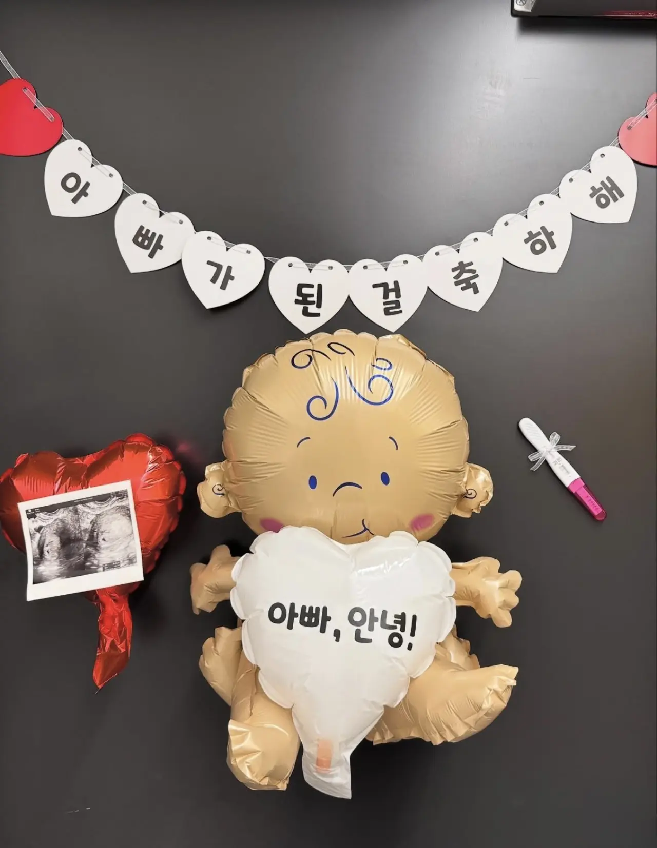 同時に、夫に妊娠をサプライズ発表するために準備した現場も公開した。「パパになったよ、おめでとう」、「パパ、こんにちは!」というメッセージと共に超音波写真、妊娠検査薬を並べてくっつけた姿で、親しみが伝わってくる。